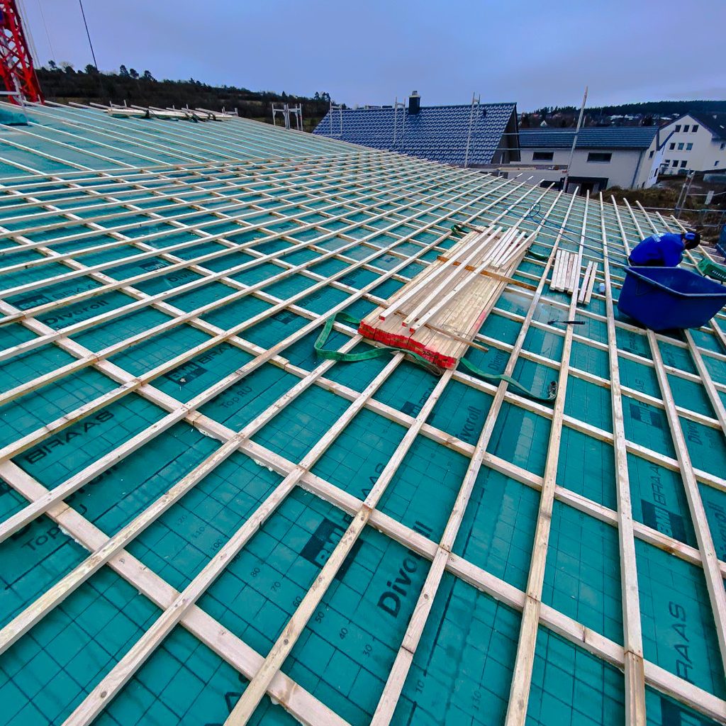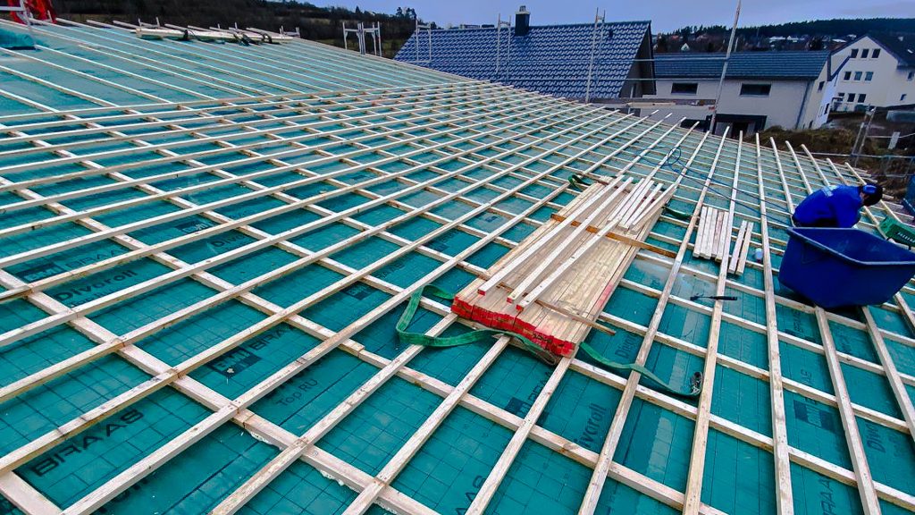 Bei diesem Privathaus wurde das bestehende Dach vollständig rückgebaut und im Anschluss neu aufgebaut. Zunächst wurden die alten Ziegel und die veraltete Dachkonstruktion sorgfältig entfernt und fachgerecht entsorgt. Im zweiten Schritt erfolgte der Einbau neuer Sparren sowie einer zeitgemäßen Dämmung, um die Energiebilanz des Hauses deutlich zu verbessern. Anschließend wurde das Dach mit neuen Ziegeln eingedeckt, die sowohl optisch als auch funktional überzeugen. Alle Anschlüsse, wie etwa am Kamin oder an Gauben, wurden nach aktuellen Regeln der Technik ausgeführt. Damit wurde ein langlebiges, dichtes und optisch ansprechendes Dach geschaffen.