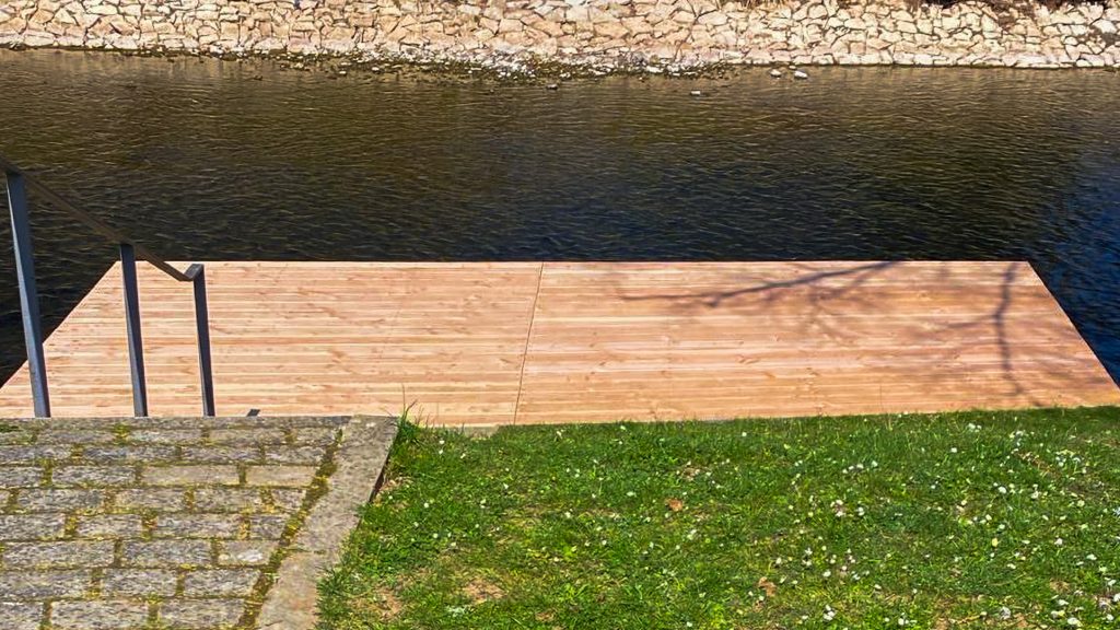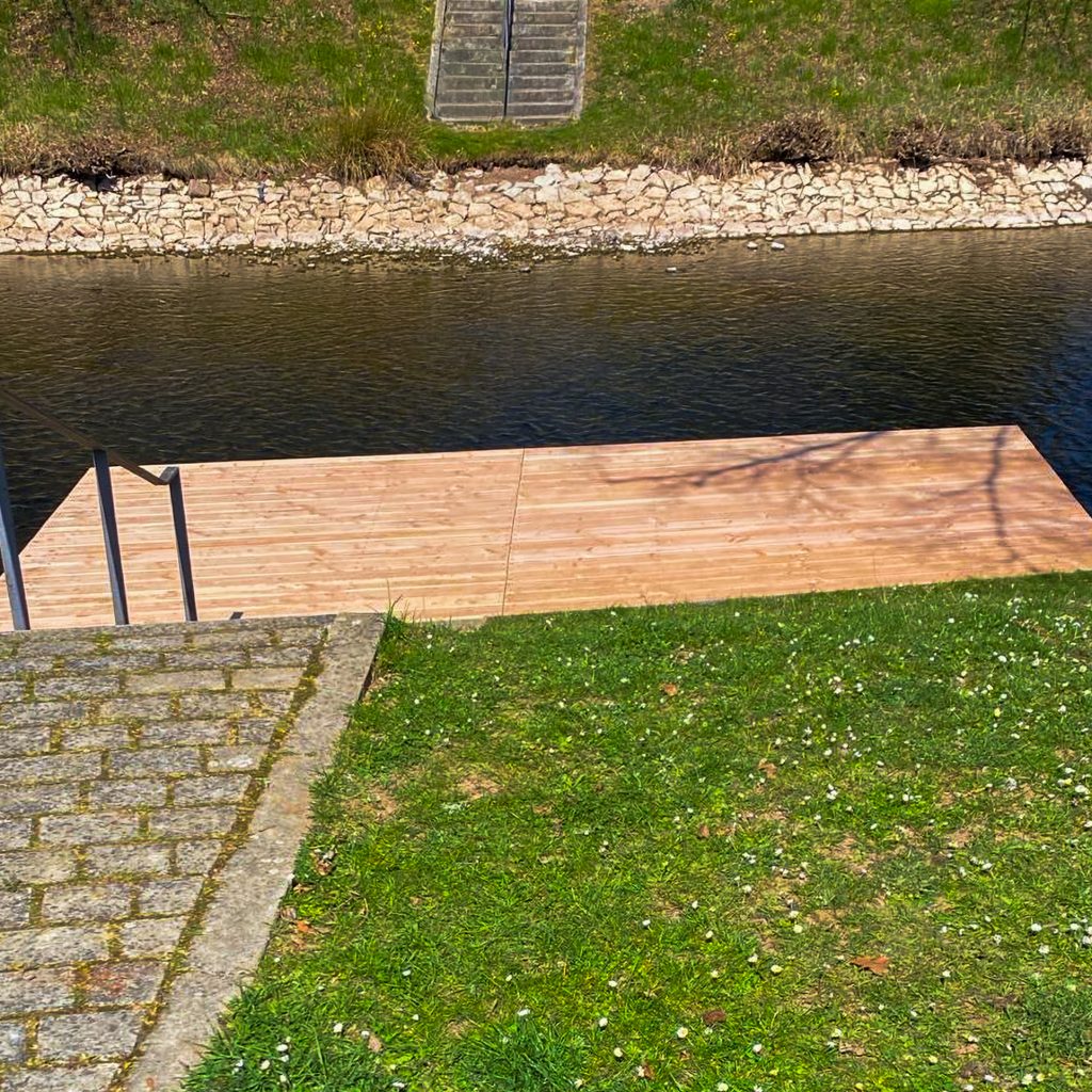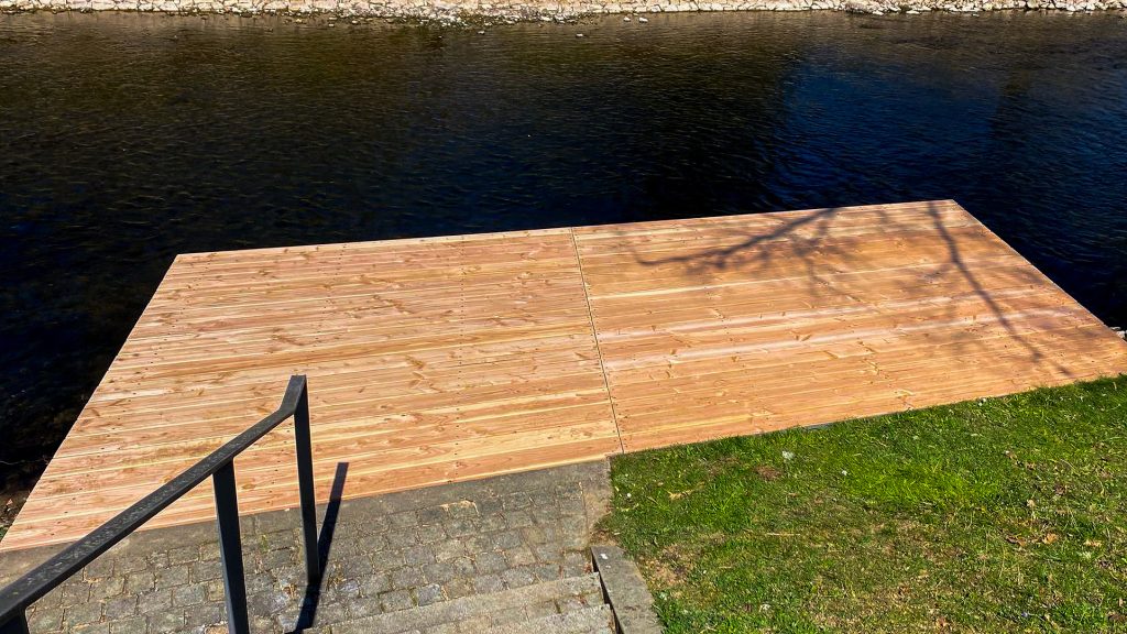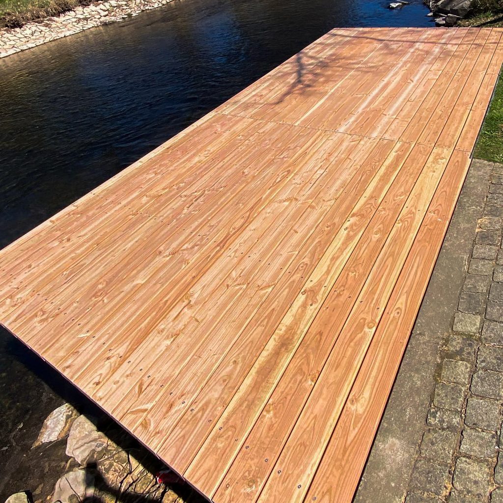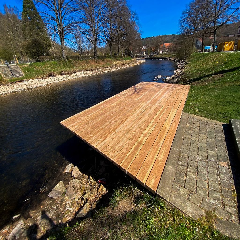 An der Nagold wurde ein in die Jahre gekommener Steg vollständig zurückgebaut und durch eine neue Konstruktion ersetzt. Nach dem Abbruch des alten Steges entstand ein moderner Zugang aus robusten Douglasienbrettern. Die Holzbretter wurden sorgfältig ausgewählt und verarbeitet, um eine hohe Langlebigkeit und Rutschfestigkeit zu gewährleisten. Die Konstruktion fügt sich harmonisch in die Umgebung des Flusslaufs ein und trägt zu einem naturnahen Erscheinungsbild bei. Durch präzise Ausführung der Unterkonstruktion und Verankerung wurde zudem für Stabilität und Sicherheit gesorgt. So steht Nutzern nun ein sicherer und optisch ansprechender Steg zur Verfügung.